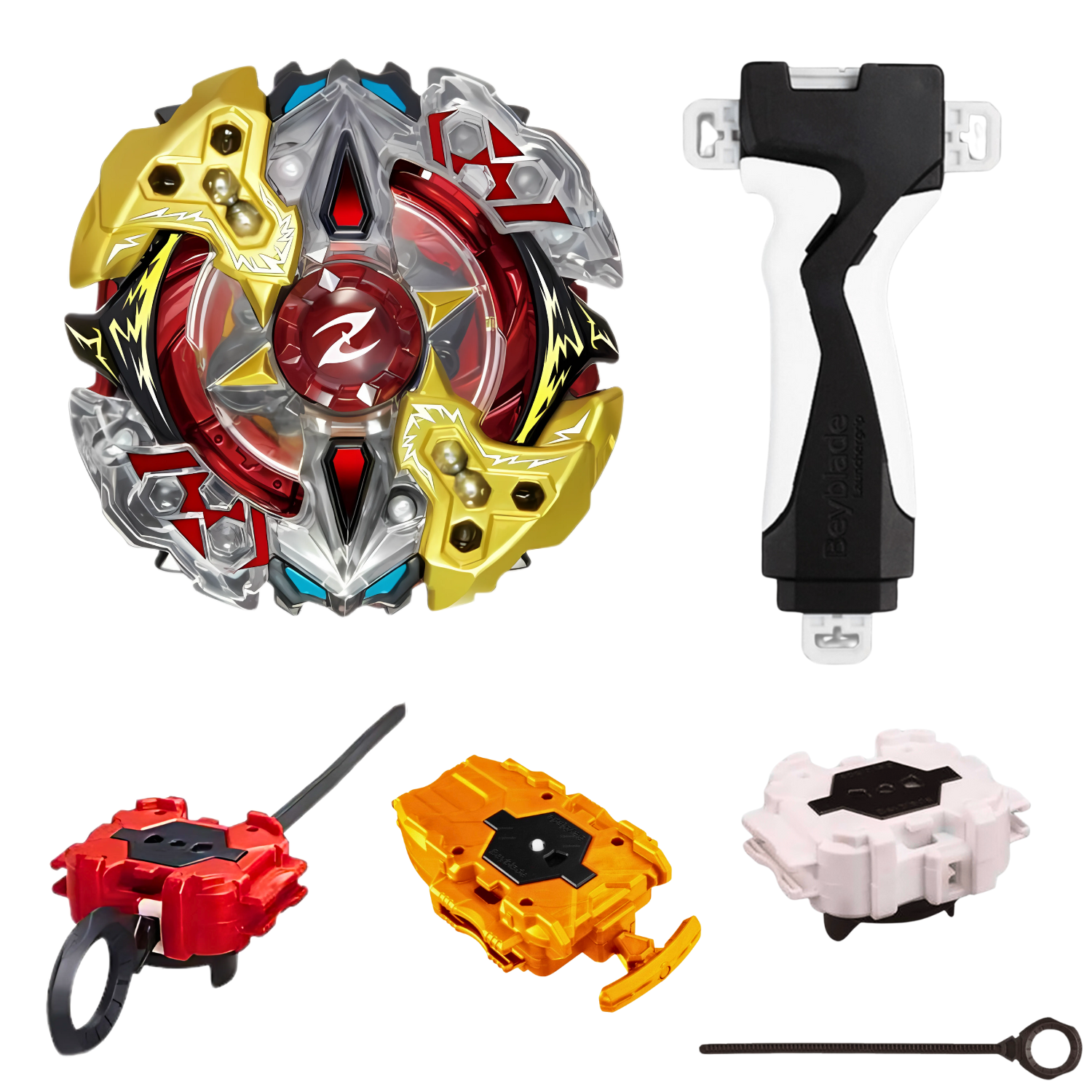 As part of the God Layer System, Galaxy Zeus features a gimmick; it features four metal balls on tracks, like the two metal balls of its predecessor, Zillion Zeus.In theory the metal balls would move outward due to centrifugal force and increase Outward Weight Distribution (OWD), Stamina and Stability. In practice, due to the increased number and thus weight of the balls and how much closer the tracks are to the edge of the Layer compared to its predecessor, Galaxy Zeus' gimmick works as intended, giving Combinations that use it long spin times.